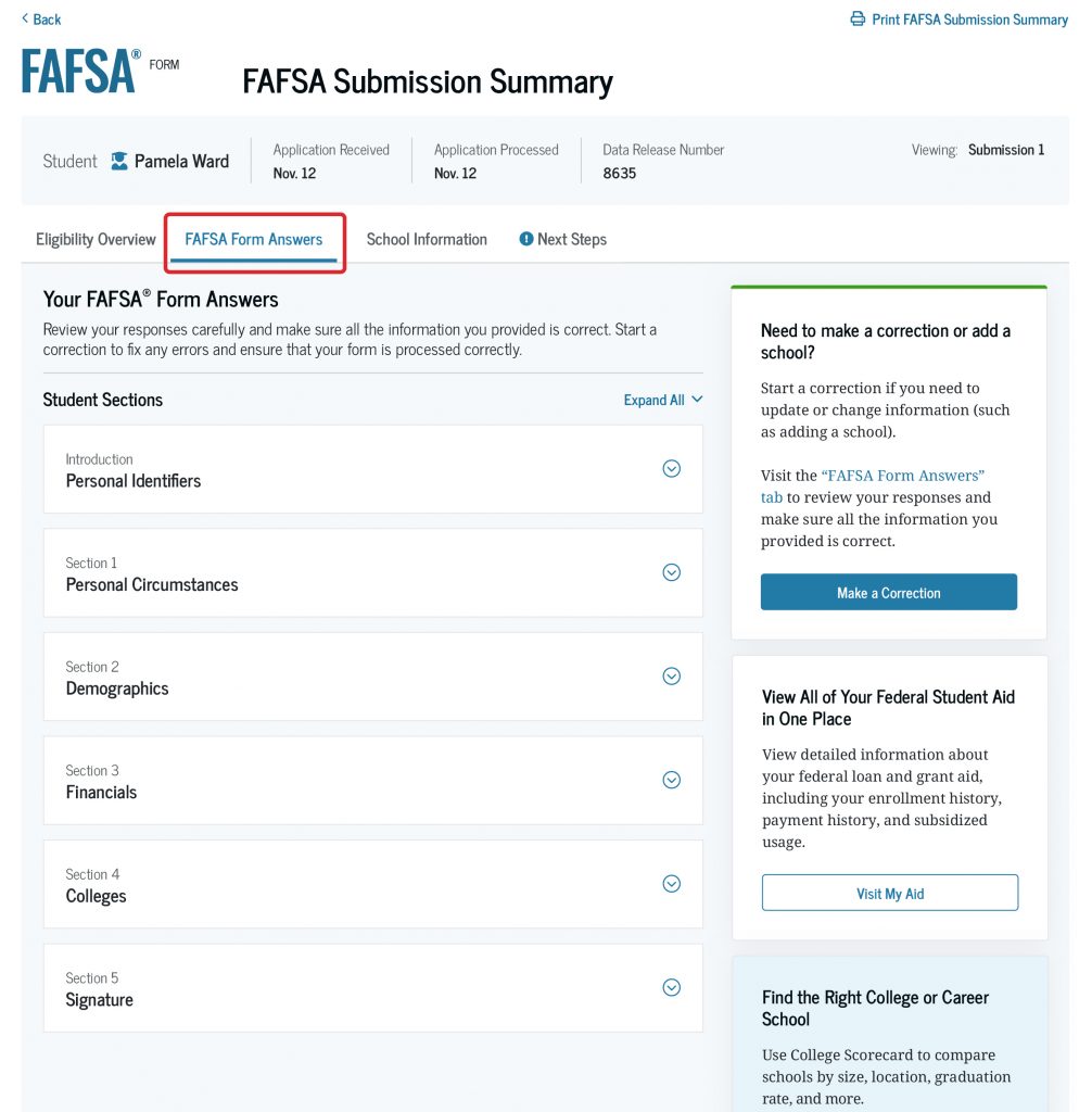 What’s in the FAFSA Submission Summary and When You’ll Get It