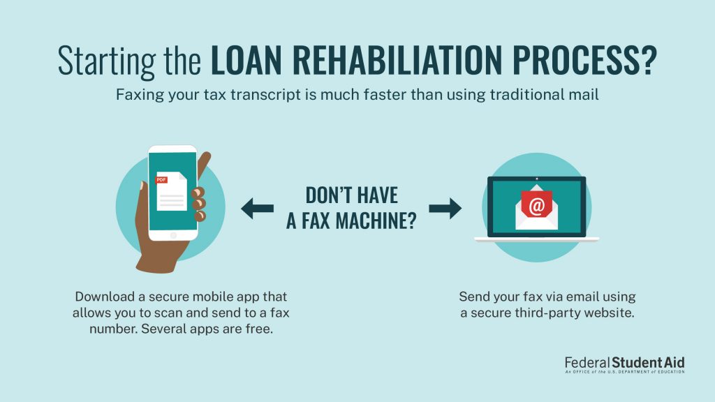 After confirming your loan holder, you will need to mail or fax one of the following documents to request a rehabilitation agreement: