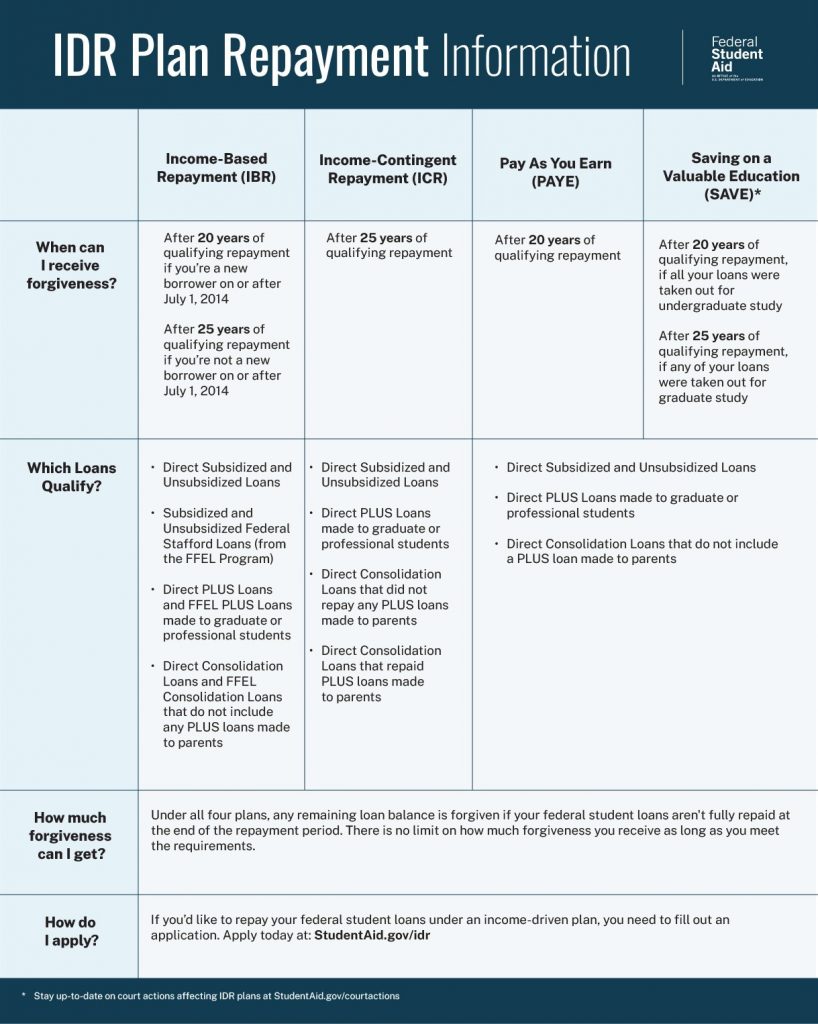 See below for a quick comparison of the plans. Ready to apply? Apply for an IDR plan now.